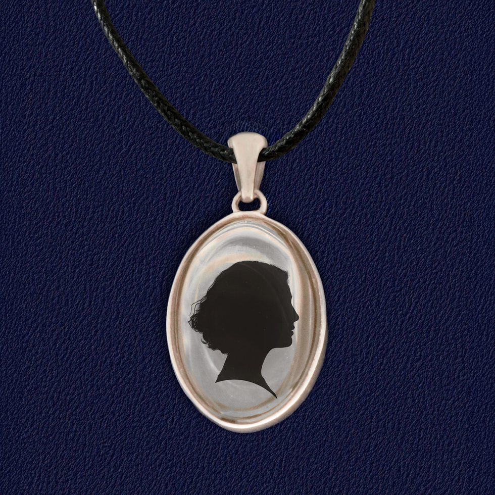 Silver Pendant featuring a black silhouette. Please refer to FAQ for questions on subject submissions.